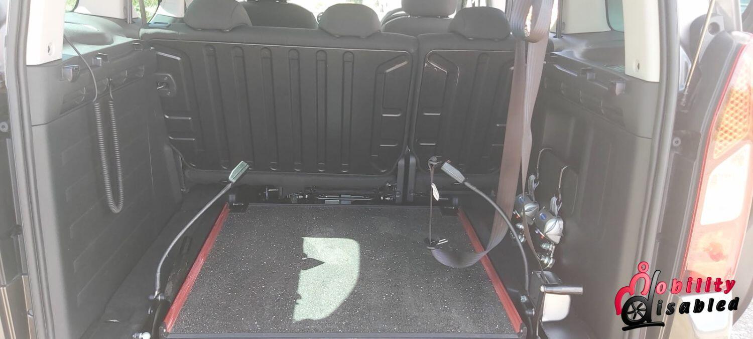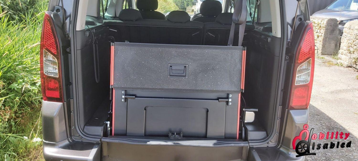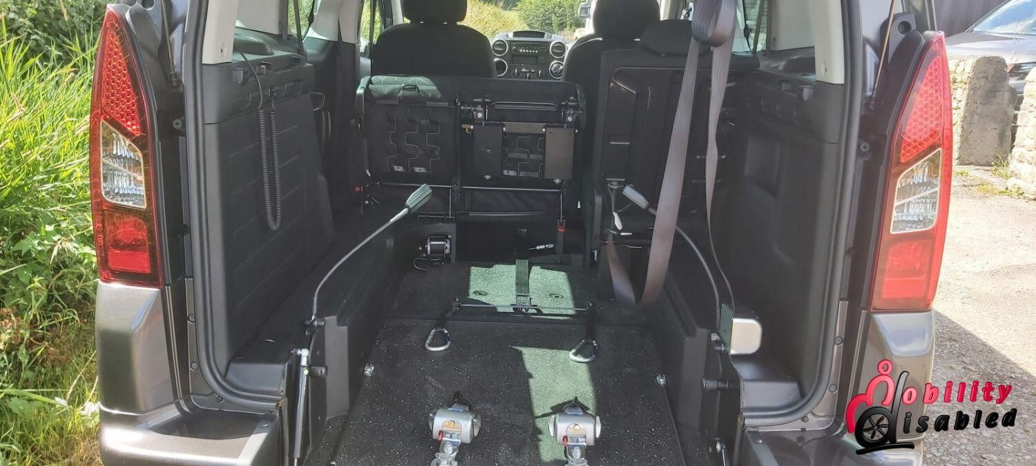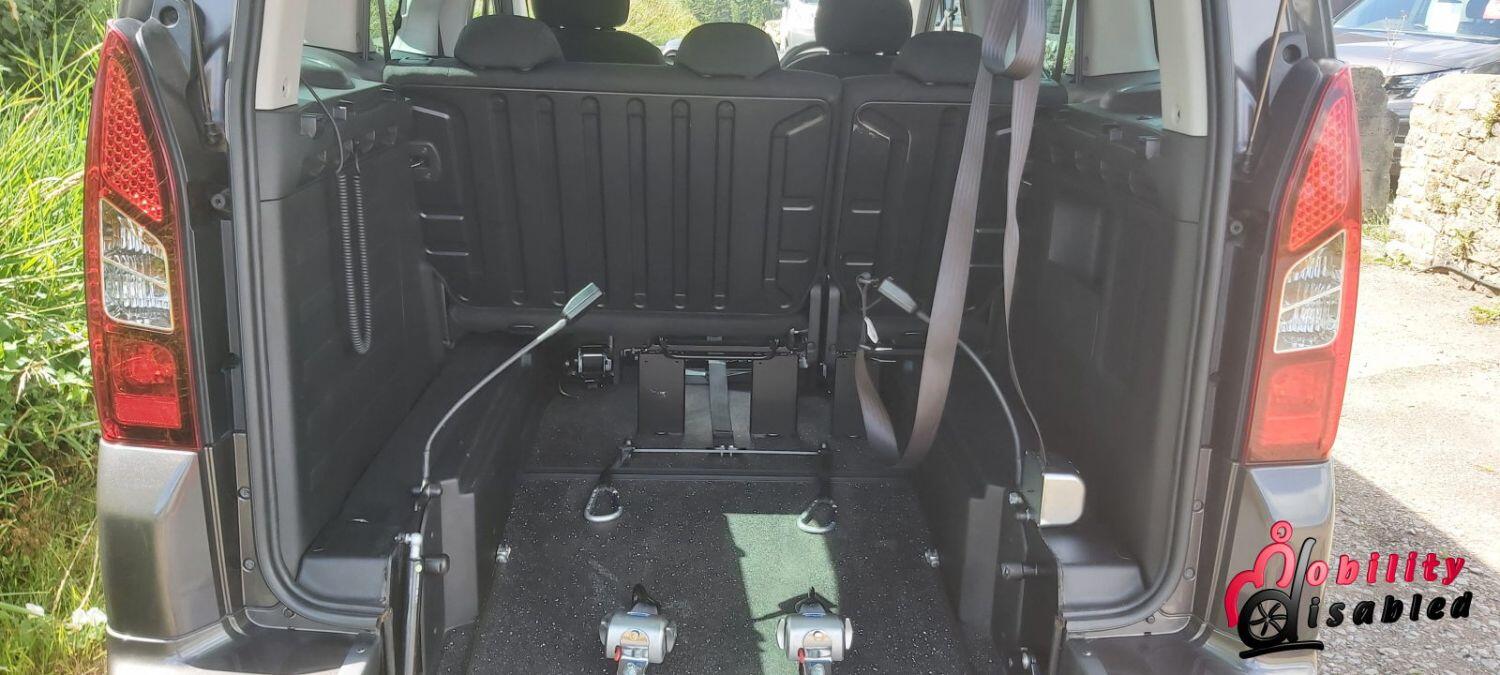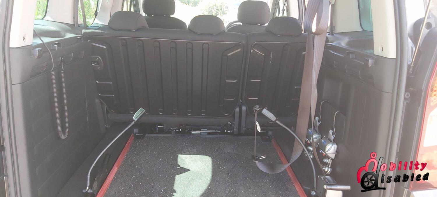The vehicle itself has been converted into a mobility vehicle. Allied vehicles (who converted this) have lowered the rear floor and provided a manual wheelchair ramp (which does fold-flat providing a flat surface for luggage and shopping when a wheelchair is not in situ). This fold flat ability means the Peugeot is truly multi-purpose. There are electric front belts and rear manual belts (as well as a 3-point safety seatbelt for the wheelchair occupant). We also have a very handy winch to help take some of the weight of the wheelchair and its user. There are 5 seats in this vehicle or 3 plus ample space for a wheelchair (or scooter). So you can use this vehicle as a standard car or a wheelchair vehicle when required.