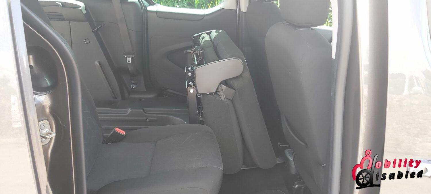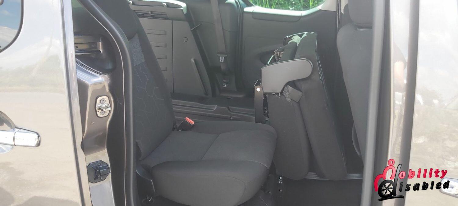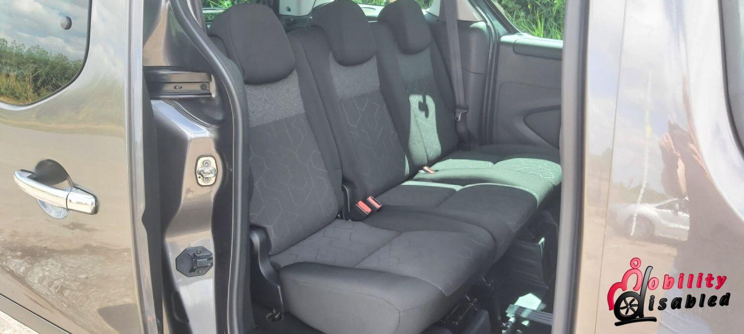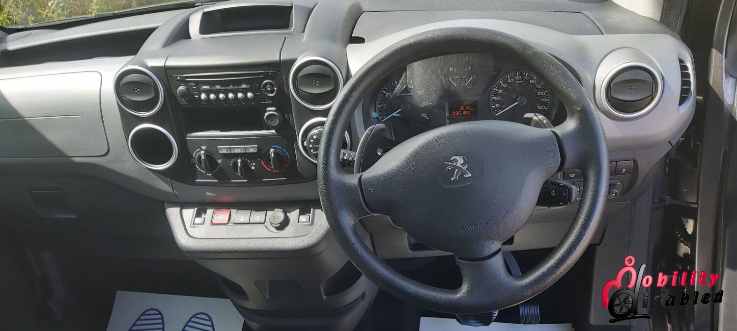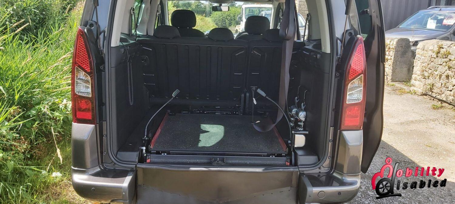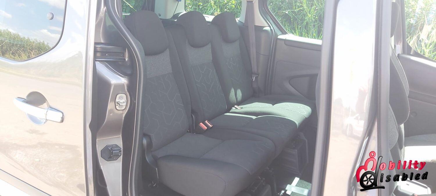 The vehicle itself has been converted into a mobility vehicle. Allied vehicles (who converted this) have lowered the rear floor and provided a manual wheelchair ramp (which does fold-flat providing a flat surface for luggage and shopping when a wheelchair is not in situ). This fold flat ability means the Peugeot is truly multi-purpose. There are electric front belts and rear manual belts (as well as a 3-point safety seatbelt for the wheelchair occupant). We also have a very handy winch to help take some of the weight of the wheelchair and its user. There are 5 seats in this vehicle or 3 plus ample space for a wheelchair (or scooter). So you can use this vehicle as a standard car or a wheelchair vehicle when required.