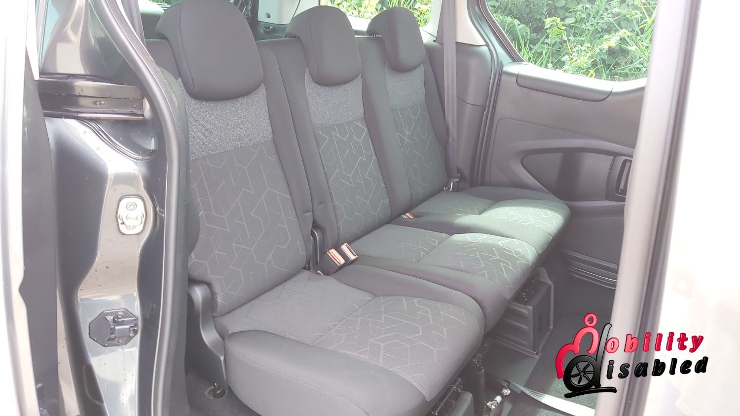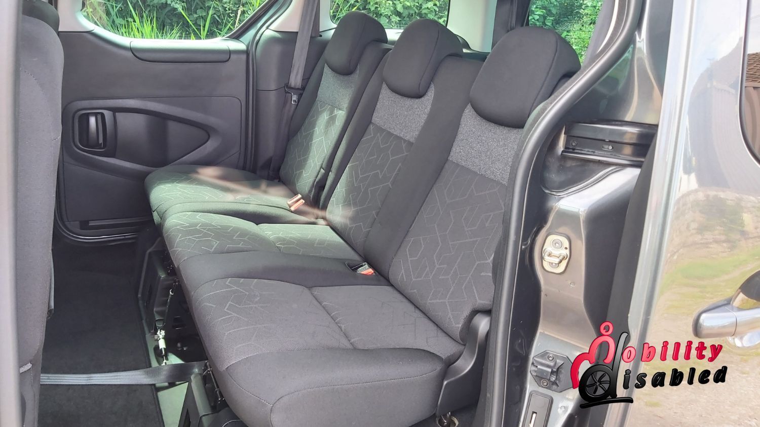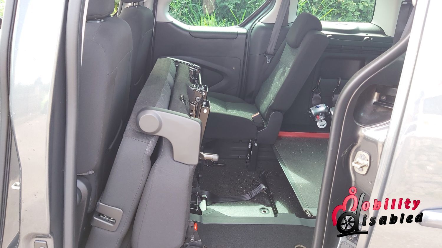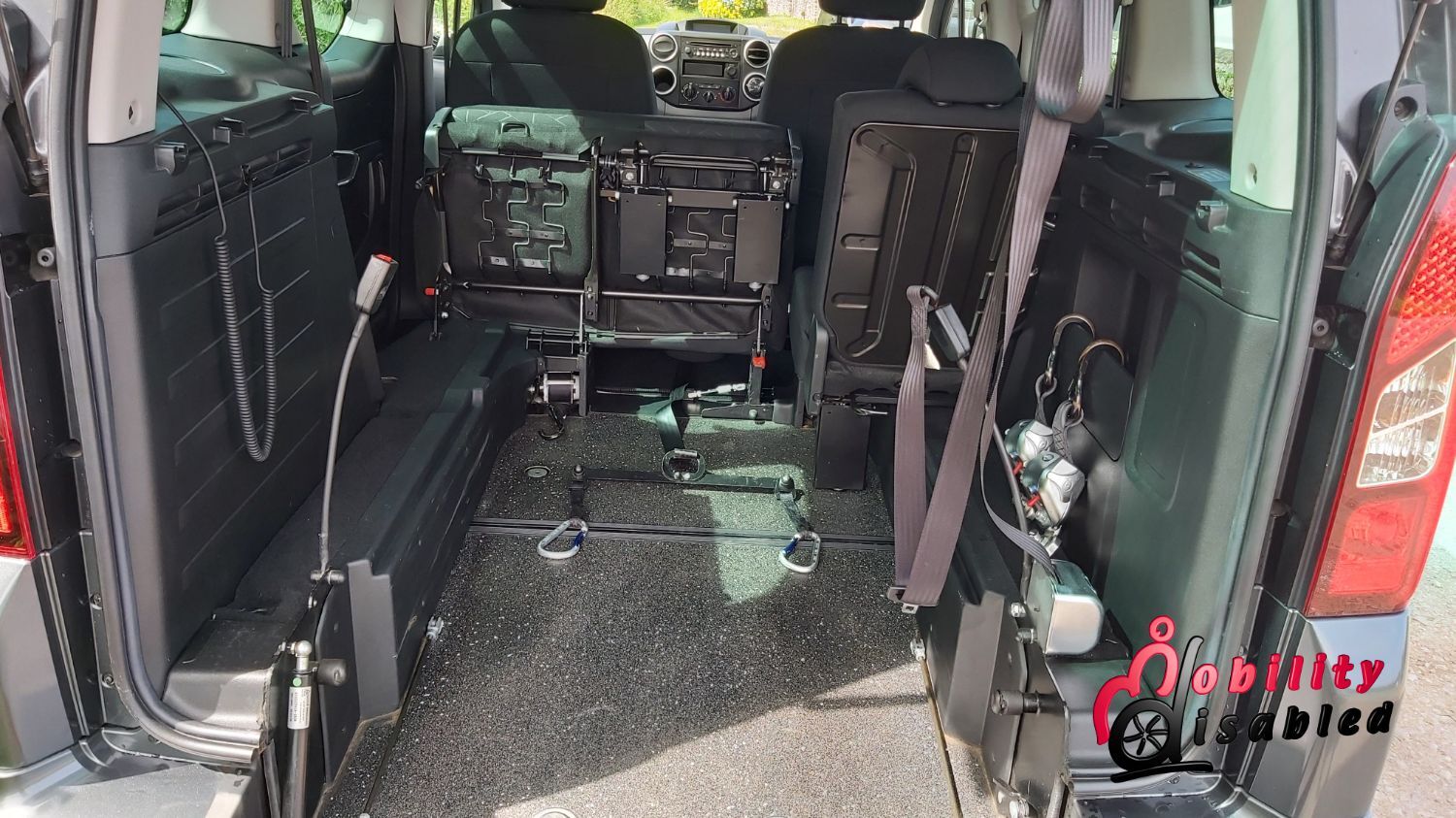 The vehicle itself has been converted into a mobility vehicle. Allied vehicles (who converted this) have lowered the rear floor and provided a manual wheelchair ramp (which does fold-flat) providing a flat surface for luggage and shopping when a wheelchair is not in situ. There are electric front belts and rear manual belts (as well as a 3-point safety seatbelt for the wheelchair occupant). We also have a very handy winch to help take some of the weight of the wheelchair and its user. There are 5 seats in this vehicle (or 3 plus a wheelchair) and ample space for a wheelchair (or scooter).