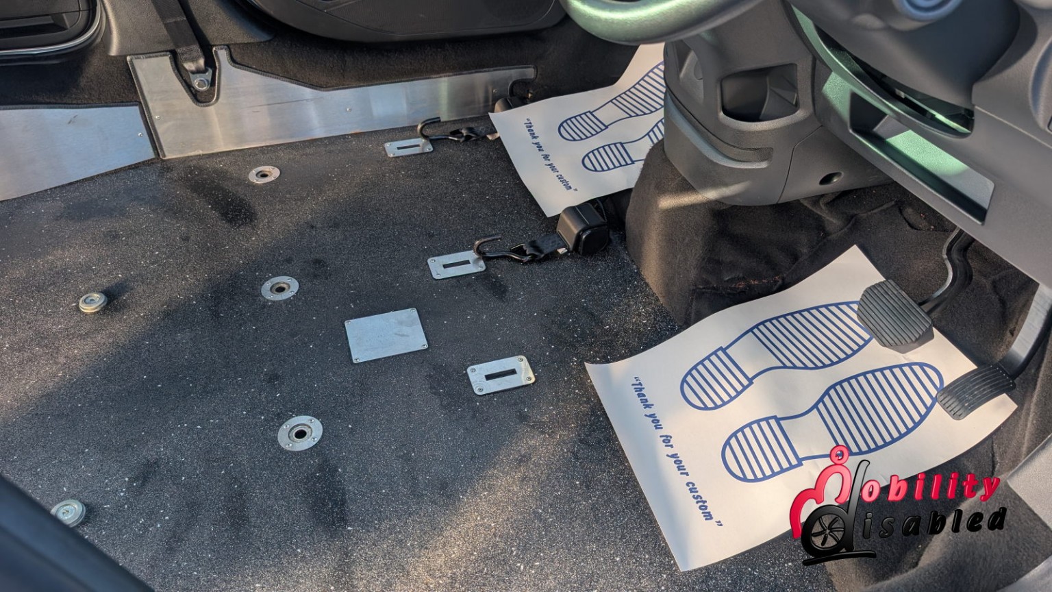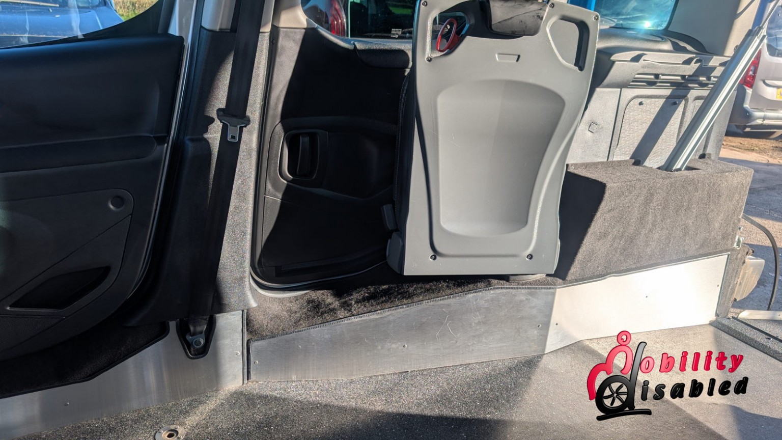 This Partner has been converted into a disabled vehicle by Allied Vehicles. They have lowered the floor of the vehicle throughout to be able to support an up front passenger position and/or drive from wheelchair position. To secure a wheelchair in the up front passenger position, there are electric front belts and rear manual belts. Currently there is no securing system for the drive from position as this vehicle was used by the previous owner as an upfront passenger vehicle only. An additional adaption (such as a wheelchair clamp) would have to be added at additional cost.